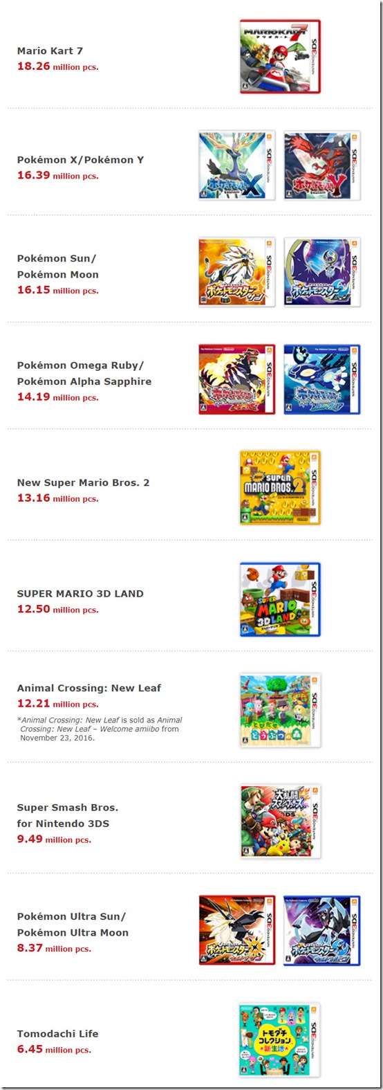 - Animal Crossing: New Leaf – 12.21 million pcs.