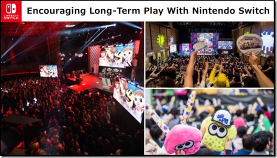 The Splatoon 2 World Championship and Super Smash Bros. Ultimate exhibition matches held in June of this year at E3 are just two examples of the variety of nononline events we have also been holding. Game contests are a place where gamers can put their practiced skills to the test, but the venues also are prepared as fun experiences that can draw crowds of spectators. We view these events as places where crowds of people can gather to feel the energy of our game communities. The events are streamed live over the internet, so people at home can also enjoy the thrills of exciting matches.