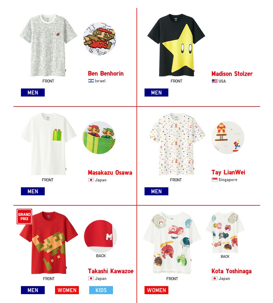 Other than the awesome top-3, there are plenty more Nintendo-themed shirts that will be available from Uniqlo. Here’s a quick look at some of the other winning entries that will be available for purchase: Super Mario
