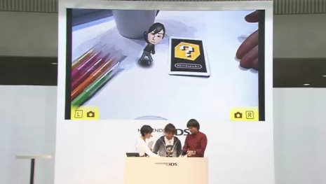 The Mii de Asobu and AR Games stage show demonstrated titles that specifically made use of the 3D visuals of the 3DS. The stage show was hosted by Testuya Shirai and Kosuke Kikuchi, a pair of Japanese comedians. Nintendo chose these comedians because they made the stage show more palatable for the general public. They demonstrated the 3DS’s Mii avatar features. The 3DS allows users to take pictures of their faces with the built-in camera and use it to create a similar-looking Mii. Testuya Shirai used his likeness twice to create a Mii; the first time, his eyes were shut, resulting in a Mii with slanted eyes, so they retried it and got it right the second time after making a few manual adjustments.