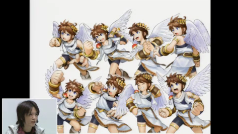 Sakurai showed artwork of Pit, the main character and bosses such as Medusa. He then went through two stage demos: an air battle demo, which Sakurai likened to Space Harrier as Pit flew around the screen shooting things, and the land battle demo, where Pit went through the level fighting against enemies and eventually the Medusa boss.