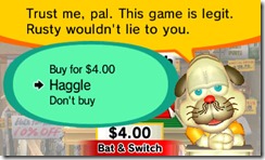 Some of you may remember that we previously reported an oddball Nintendo 3DS game, titled Darumeshi Sports Shop. This is an eShop title about a gag manga-styled dog who runs a sporting goods store full of mini-games. The game will be released with a makeover, and titled Rusty’s Real Deal Baseball in North America. To bring you up to speed, ex-pro baseball player Rusty Slugger owns a sports shack and he’s broke with 10 puppies to feed. In order to help him out, you’ll be purchasing various mini-games such as Bat & Switch, Cage Match, Drop & Pop, Volley Bat, and more that will be testing out your virtual baseball reflexes and hitting abilities. While Rusty’s Real Deal Baseball and its first mini-game will be free, additional games start at $4 apiece; however, you’ll be able to haggle on prices by offering Rusty his favorite doughnuts or just by listening to his problems and putting him in a better mood. Rusty’s Real Deal Baseball will be available this April for Nintendo 3DS. You can also check out more details on the game in our earlier report. While the game is Nintendo’s second free-to-play 3DS title in the west—the first being Steel Diver: Sub Wars—in Japan, it was the first.