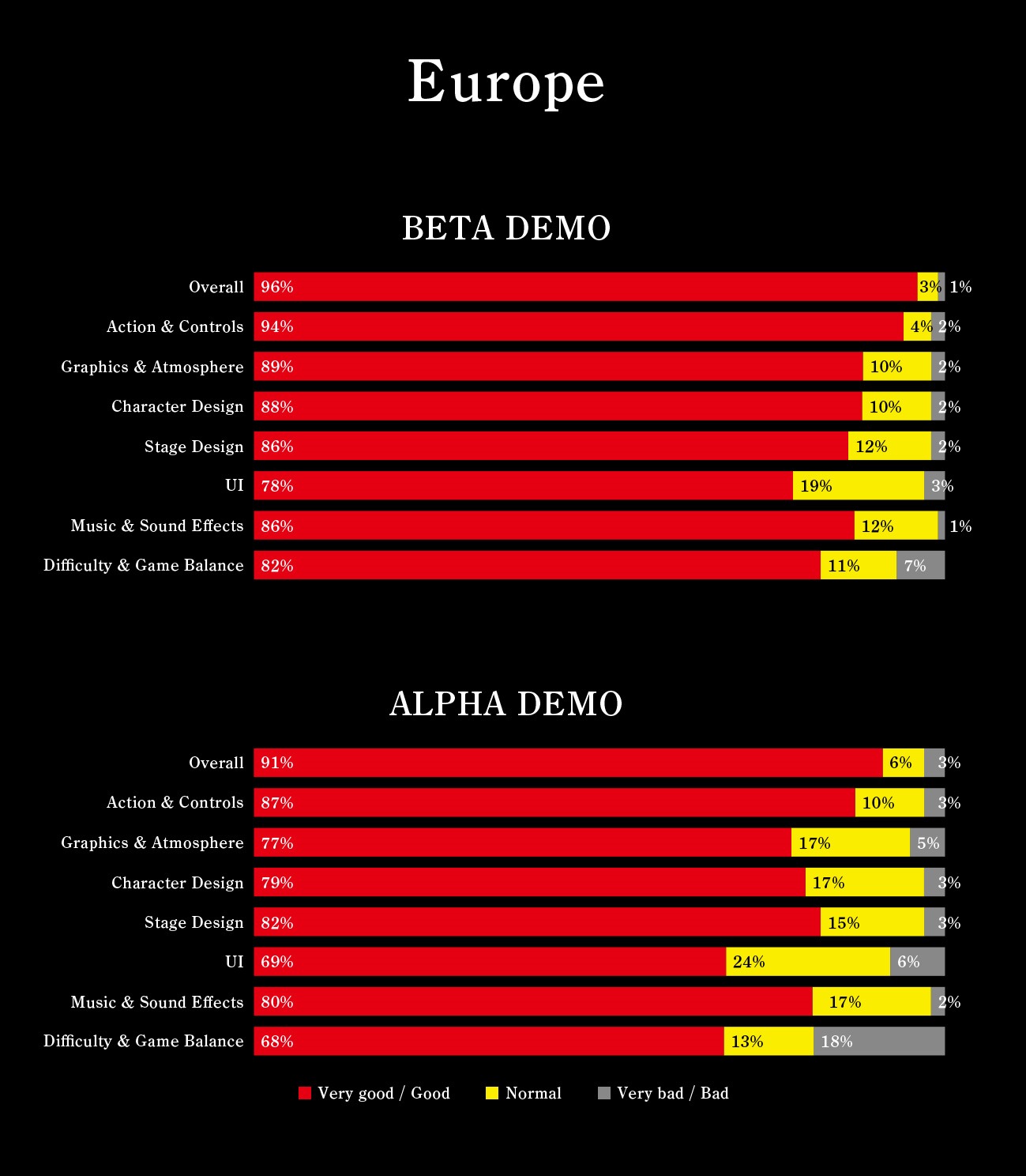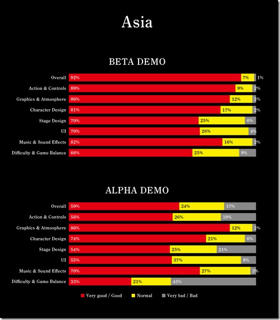 Koei Tecmo has recently shared the results of its survey for Nioh’s demo, revealing the various improvements that will be made to the final game based on player feedback they have received. In addition, they also announced that players would be able to delete the Nioh beta demo game data and save data, as doing so will not affect the “Mark of the Conqueror” and “Mark of the Warrior” downloadable content attainable from playing it. Below is a look at the results from both the alpha and beta, separated by region, showing player feedback on the game’s various elements, such as controls, graphics, difficulty and more.