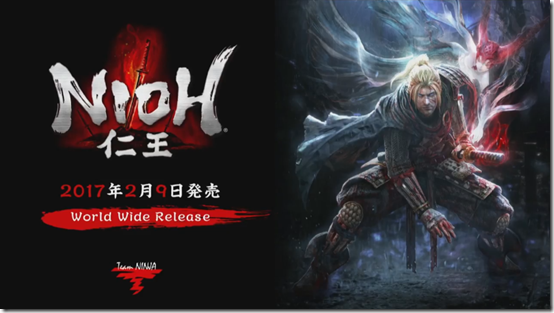 Koei Tecmo announced during Sony’s 2016 PlayStation Press Conference that their upcoming action RPG Nioh is releasing worldwide on February 9, 2017. When the game releases in Japan, they’re also getting a 10,800 yen Deluxe Edition, featuring its Season Pass with extra quests, weapons, story parts, monsters, and more. Additionally, first-print copies of the game will come with a DLC for Sanada Yukimura armor.