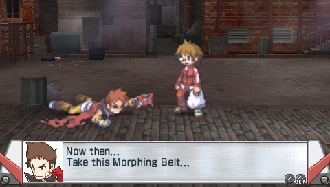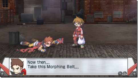 Anyhoo, as far as localization goes, I was placed in charge of translating the original Japanese text (and some other stuff, too). I was expected to learn the game in and out until I knew it like the back of my hand (hmm, never saw that blemish there before). The actual writing of the script was the most time consuming part but also the most fun. With jokes and dialogue that had Japanese hero shows as their common theme, it was sometimes a bit difficult to gauge how much of it people here would “get.”