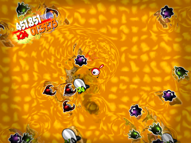 In this game, you rescue DNA strands that link up to make a tail. While you’re collecting DNA and growing, viruses like Stress and Chaser hunt you down. In one mode the game zooms in on the lead DNA unit and sees how fast you can collect 128 lost DNA fragments. In another mode players get to fight back and shoot viruses.