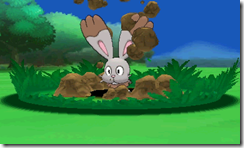 Bunnelby is a new Normal-type Pokémon that creates its den by digging in the ground with its large, shovel-shaped ears. These powerful ears are strong enough to chop right through thick tree roots, making them a force to be reckoned with in battle. Bunnelby can learn the Ground-type move Dig. On the first turn, the user burrows underground, and on the second turn, it attacks! In Double Battles, a Pokémon can use Dig to avoid its ally’s attack and then dish out damage on the next turn.