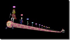 Still not quite sure what Nobi Nobi Boy is since it wasn’t playable at Tokyo Game Show, but since it’s a brand new project from Katamari Damacy creator Keita Takahashi I’m quite curious what it is. Namco Bandai’s official Nobi Nobi Boy site doesn’t help much by listing the game’s genre as “video game” and explaining the worm-like creature extends. The site, however, has some critical information like Nobi Nobi Boy’s release date which is January 29 in Japan and it will be sold for 800 yen ($8.50) as a downloadable PlayStation Network game. Nobi Nobi Boy is also scheduled to come out in Korea the same day and it has been recently rated by the USK, Germany’s ESRB, so it’s possible Namco Bandai is aiming for a worldwide release around January 29. One of the other features the website reveals is users can save and upload movies to YouTube, a feature that sounds similar to what’s in PixelJunk Eden. Update: Namco Bandai hasn’t announced a release date for North America, but an English version will be ready on January 29 too.