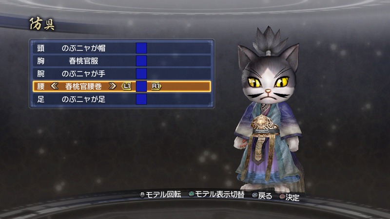 I realize Tecmo Koei’s Dynasty Warriors games took liberties with the Romance of the Three Kingdoms, but I… don’t remember any cat generals. Oh well, Nobunyaga, a feline version of Nobunaga Oda, is a playable character in Dynasty Warriors 7 Empires. Wait isn’t Nobunaga from Samurai Warriors… never mind? (Maybe we should start calling it Dynyasty Warriors 7 with "nya" being "meow" in Japanese?)