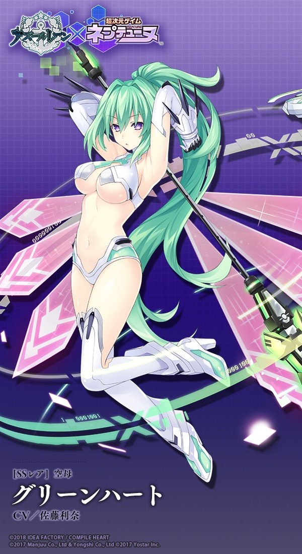 Vert is an S Rare Aircraft Carrier, and Green Heart is an SS Rare Aircraft Carrier. Costumes: The Neptunia characters will also have special limited-time costumes that are available through Azur Lane’s Costume shop.