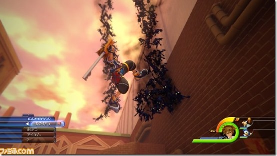 “The protagonist Sora’s mobility will be vastly improved,” says Nomura. “Since we now have so many things we can do, it can be a little overwhelming, so we’re currently thinking about particular elements, and how much freedom they’ll allow. While Kingdom Hearts III is an action title, it is also an RPG. There will be action characteristics that will allow you to fly as far as you want, if you actually try doing it.” He elaborates, “While there will be some sort of limit, this time, there will be the ‘Free Run’ feature that is seen in other action games as of late, that allow you to run and climb all over the place. Moreover, the ability to fly and jump will be seeing a much greater improvement, and I believe that the mobility has become much greater. For those of you who’ve played Kingdom Hearts II, we already have something that has higher mobility than the Final Form.”