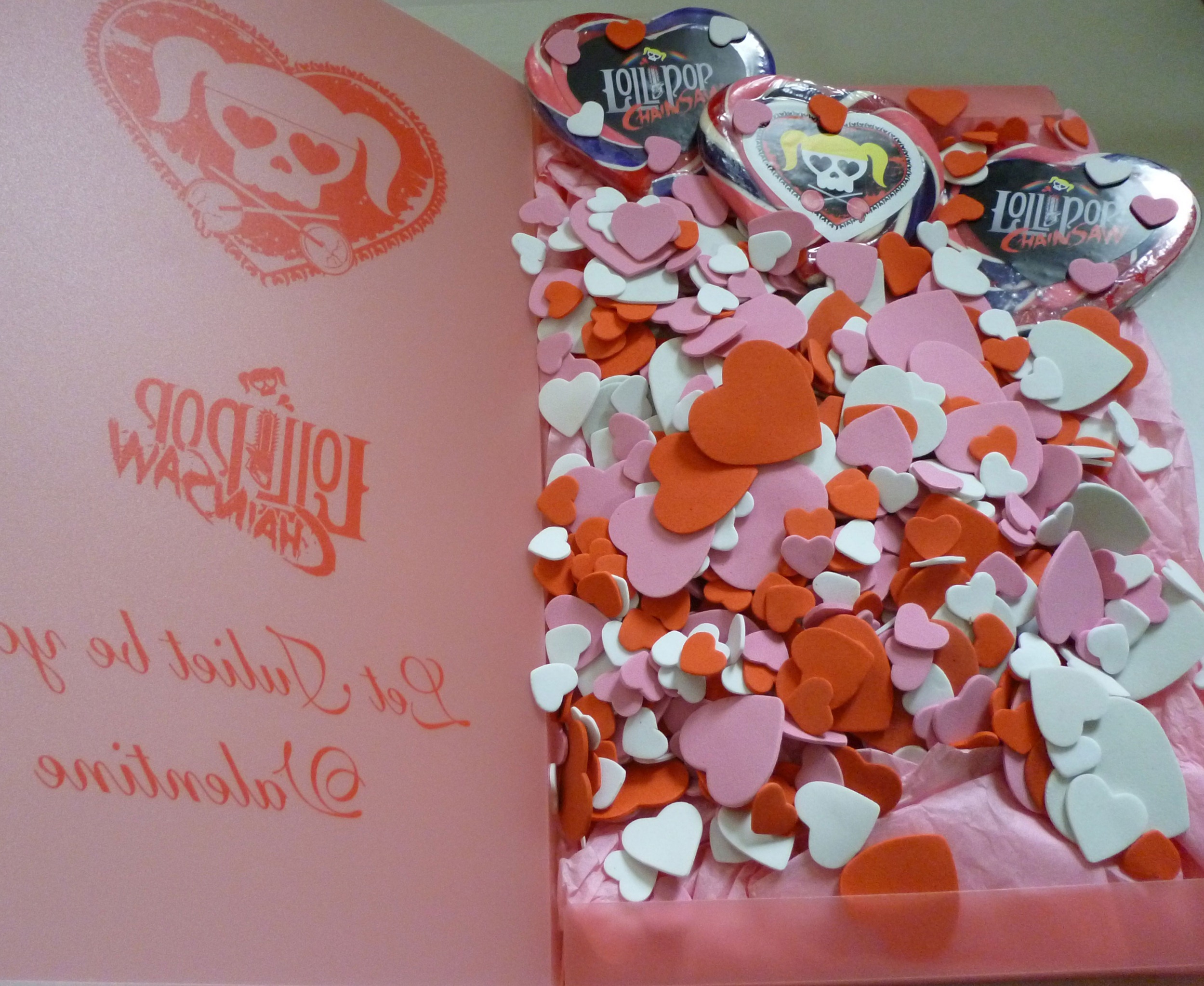 PlayStation 3Xbox 360 Now For A Lollipop Chainsaw Valentine’s Day Surprise By Siliconera Staff February 14, 2012 Warner Bros. sent over an oversized Lollipop Chainsaw valentine. I hope Juliet didn’t put her boyfriend’s severed head inside… Recommended Videos Ah, lollipops. How appropriate and I presume these hearts exploded out of zombies she cut into pieces? About The Author Siliconera StaffSometimes we'll publish a story as a group. You'll find collaborative stories and some housekeeping announcements under this mysterious Siliconera Staff Writer account.More Stories by Siliconera Staff