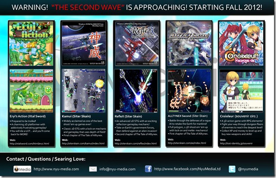 Doujin publisher, Nyu Media, have announced their second wave of doujin titles scheduled for release in the near future. Here’s an infographic they sent out, to give one a quick glimpse the line-up: