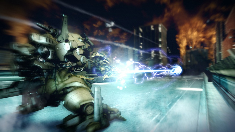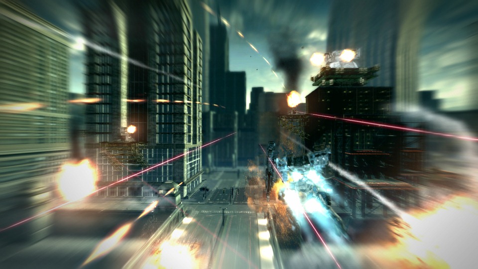 From Software designed Armored Core V with multistory levels. Players can skim on the ground or climb up buildings and snipe robots from rooftops.
