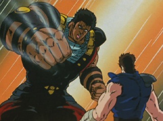 Yeah, it looks ridiculous. You’re seeing the difference in how One Piece characters, especially those on the villain side (or the grey areas between) will compare to each other physically. Since we’re in a video game version of One Piece, particularly a Musou version, these models kind of have to be locked in. But in the “reality” of One Piece, characters’ physical presence can be much more fluid. While Oda does provide measurements for his characters and they are big in a literal sense, the way he actually draws them is often more abstract. There’s no “off-model” in One Piece, because a character’s size can change drastically as needed. Oda has noted in the past he’s a big fan of Fist of the North Star, and references or nods have snuck their way into One Piece. In a lot of ways, this David and Goliath stuff we see in One Piece is traceable back to that and other works of the 80s. Just like in One Piece, Hokuto no Ken did more than just play with perspective for key thematic moments. Villains like Mr. Heart or Roah could be portrayed as giants, regardless of their true size. And if a character on the good guys’ side was larger than life, you knew to expect a lot from their time in the story. Here are a couple examples from the Hokuto no Ken anime: ![]()
