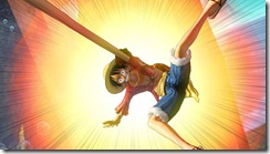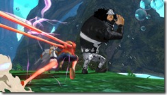 I decided to start with Episode 0, which took place after the timeskip in the anime series. Sanji and Zoro made brief appearances in an event setting the scene on an island. Luffy starts under siege by waves of generic Marines. A Pacifista lead the charge and Luffy flew around the island, stretching his arms to evade attacks. At first I thought this might be a movie, but it was a setup for a QTE segment. To keep Luffy safe, I had to tap the square, X and finally move the right analog stick to make Luffy escape.