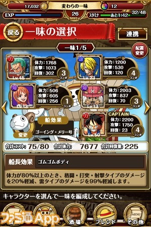 The gameplay itself is pretty simple, as you put together your team of Mugiwara pirates and friends. The characters have stats in health, attack, healing, and combos.