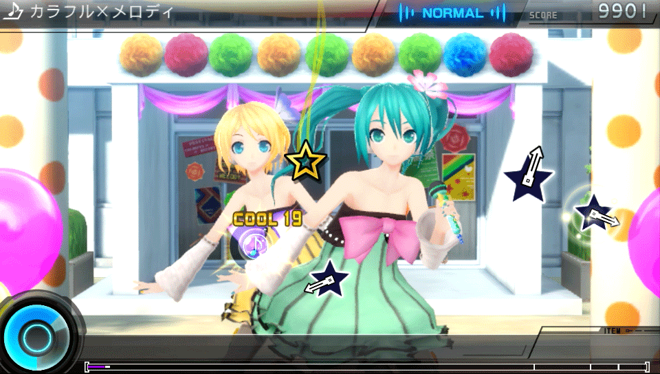 The Hatsune Miku: Project Diva F 2nd demo has three songs "Akasuki Arrival" from Last Note, "Romeo and Cinderella" from doriko, and "Colorful X Melody" from Team Moer.