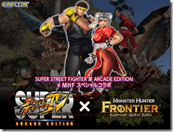 In Japan, there’s an incentive for Monster Hunter fans to get Super Street Fighter IV Arcade Edition on Xbox 360. This version of the game includes download codes for Ryu and Chun-Li costumes.