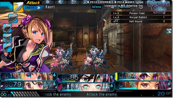 I’ll be honest: this is a genre that really doesn’t sit well with me around 90% of the time. Things are often very limiting and I’ve run into far too many titles with no tutorial or direction given. It wasn’t until I tried Demon Gaze that this genre made me feel welcome (and expect a lot of me referring back to that game in this playtest—it’s my only reference point with this company). But I was still hesitant, despite these being the same devs, because Operation Abyss: New Tokyo Legacy is a remake. From 2008-2009, Experience Inc. released their first games—a Japan-only trilogy on PC known as Generation Xth (pronounce that last word as “zith”). This is a remake of the first two-thirds of that trilogy: Code Hazard and Code Breaker (the final part, Code Realize, is what was made into Operation Babyl). I have no idea how the older versions played, but one major potential tipping-point for me would be whether this remake decided to be anywhere near as friendly as Demon Gaze in terms of easing you into things. My worries dissipated immediately once the introductory scenes were over and the game outright handed me a recommended party, then proceeded to explain some (not all) mechanics as they became relevant. Stuff like what the different classes do and the elemental weakness chart need to looked up in the in-game encyclopedia, but otherwise the game does a decent job of it.