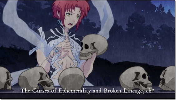Oreshika is my new favorite Vita game. I’m delighted by how it plays. Even though there are time constraints, I never feel bound by them. Instead, they’re more of a background challenge, an incentive to keep me pushing my characters forward. Oreshika begins with Abe no Seimei arranging for the player’s entire clan to be blamed for the theft of Celestial Instruments. Rather than this being an end, it’s instead a beginning. The goddess Nueko gives the family a second chance. There’s a price for this boon, however. The entire line is subject to two curses. The Curse of Ephemerality means each person only lives about two years, while the Curse of Broken Lineage means members can only breed with gods or other cursed individuals upon reaching 8 months of age. What follows is best described as a game that is part resource management and part dungeon crawler. The goal is to clear the family’s name and break the curse, which will of course prove more difficult than it seems. Kochin the weasel is a personal advisor, ready to offer advise on what goals to consider from month to month. The basic flow is as such. You start in your home, with an option to check on characters, decide on training, and visit town to restock or invest in various businesses. Once menial chores are done, you determine whether your family will fight in festivals, hook up with a god or other cursed character to create a child, or go into a dungeon to earn Devotion points for fusions, collect skill scrolls, find new enemies to fight, or take on a boss fight that will advance the story.