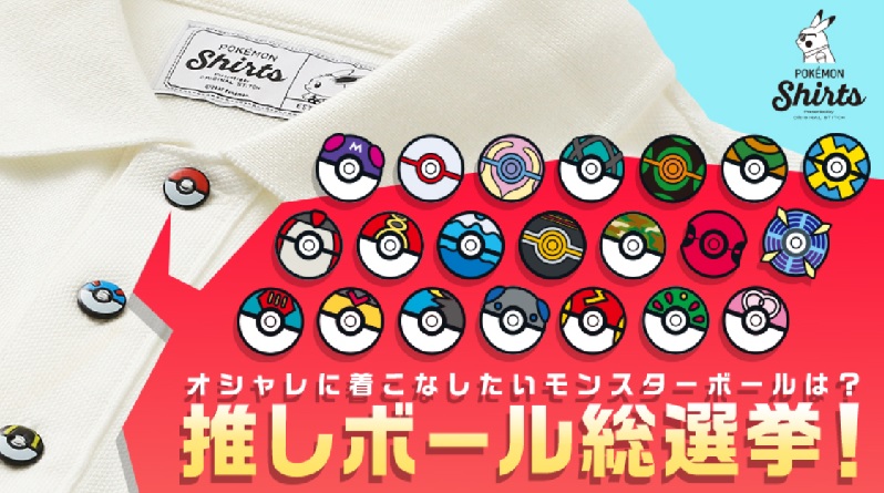 Original Stitch will make their Pokémon shirts more customizable in mid-May 2021 by adding new variations on color, Pokémon embroidery, and Poké Ball buttons. To celebrate, they will hold a Twitter poll from March 12-19, 2021 where users can vote for their favorite type of Poké Ball. The top three will be included as button designs. [Thanks, Dengeki Online!] You can make your own one-of-a-kind Pokémon shirt with Original Stitch. The collar, the sleeves, the chest pocket, and color are all up to you. Though they announced that pale green and orange shirts will become available, there is no news on what new Pokémon will appear as options. Earlier this year, they added 34 patterns from Ruby and Sapphire and three other patterns based on the Galar starters.