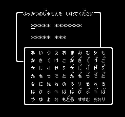 Dragon Quest’s password entry screen