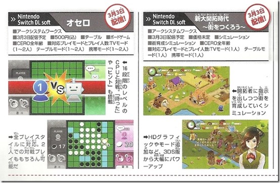 Two games from Arc System Works will be available on the Japanese Switch Nintendo eShop on the day of the upcoming console’s launch. Othello and Frontier Days: Founding Pioneers will both release on March 3rd and magazine Nintendo Dream has shared a look at both titles in its latest issue. [Thanks, NintendoEverything.] Othello will cost 500 yen on the Switch and will feature battles against 16 different levels of CPU opponents. The other Switch eShop title from Arc System Works is Frontier Days: Founding Pioneers. No price was listed on Nintendo Dream and not many details were shared other than the fact that the Switch version of the game will feature HD visuals and more modes compared to the 3DS version. Additionally, a teaser site has recently gone up for Frontier Days, hinting that the game could be coming west very soon. Othello and Frontier Days: Founding Pioneers will release on the Japanese eShop for the Switch on March 3rd, 2017.