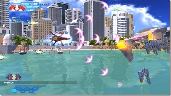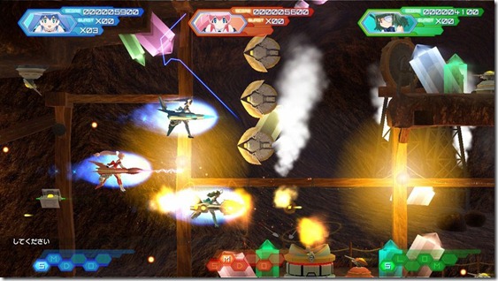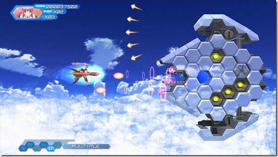 Food for thought: 1. While the bosses themselves are somewhat generic machines, they’re piloted by some interesting characters. I was particularly surprised to fight Shiori Fujisaki from Tokimeki Memorial and a scantily-clad moe catgirl version of the cat submarine from Jikkyou Oshaberi Parodius. 2. The characters talk a lot. As I mentioned earlier, some of this text is translated in a little subtitle ticker that runs in the lower-left corner of the screen. However, there isn’t really much to what the characters are saying, and some lines go entirely untranslated. It’s also really hard to see on the brighter levels. 3. If you must use a controller, stick to using the D-Pad rather than the analog stick. One of my deaths was the result of a failed attempt at using the analog stick instead.