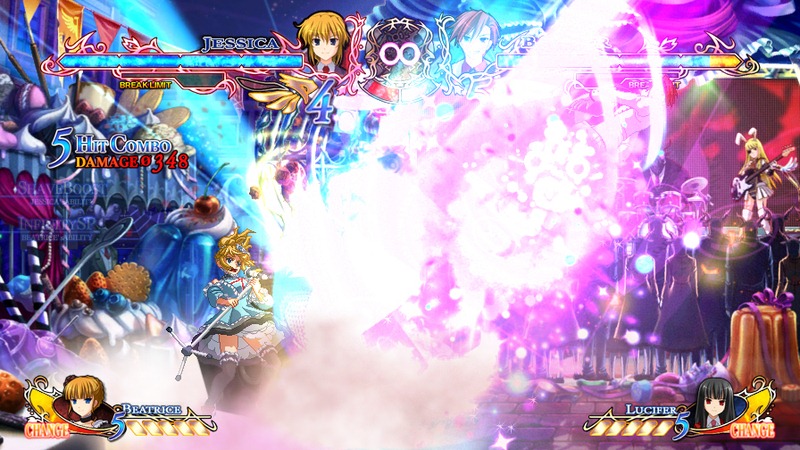 Ougon Musou Kyoku X adds new fighters to the mix. Jessica, George and Rosa from the Ushiromiya family are part of the roster now. The game also has additional story mode scenarios and new CG scenes, and uses Xbox Live for online play. Speaking of Jessica, you can see some of her moves and combos in a couple of new videos below: