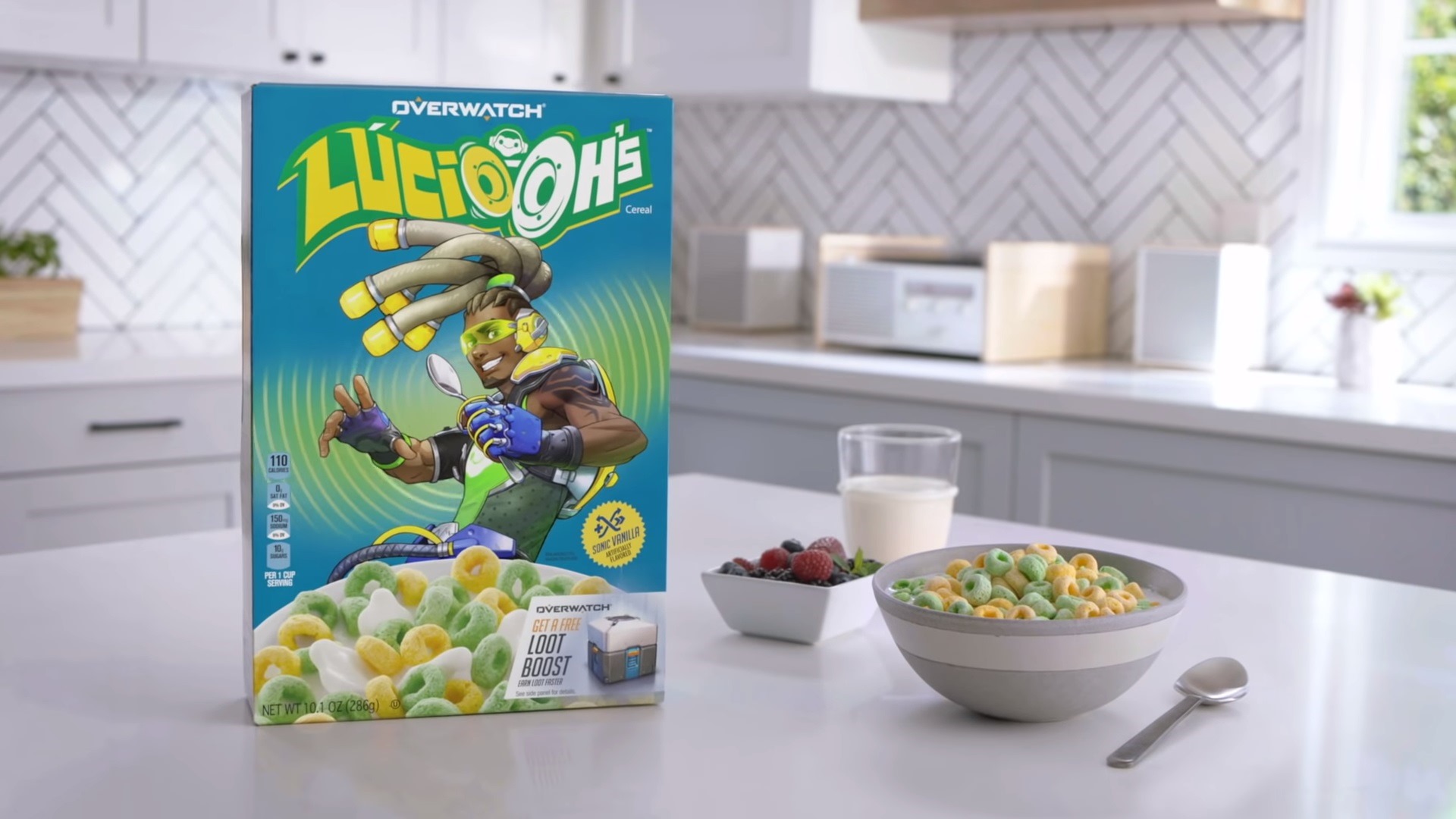 Lucio-Ohs are an in-game cereal in Overwatch, and now they will appear on real store shelves in December 2018. Kelloggs is making them and will start selling them sometime next month. A price was not announced, but the box confirms it will come with a Loot Boost for the game.