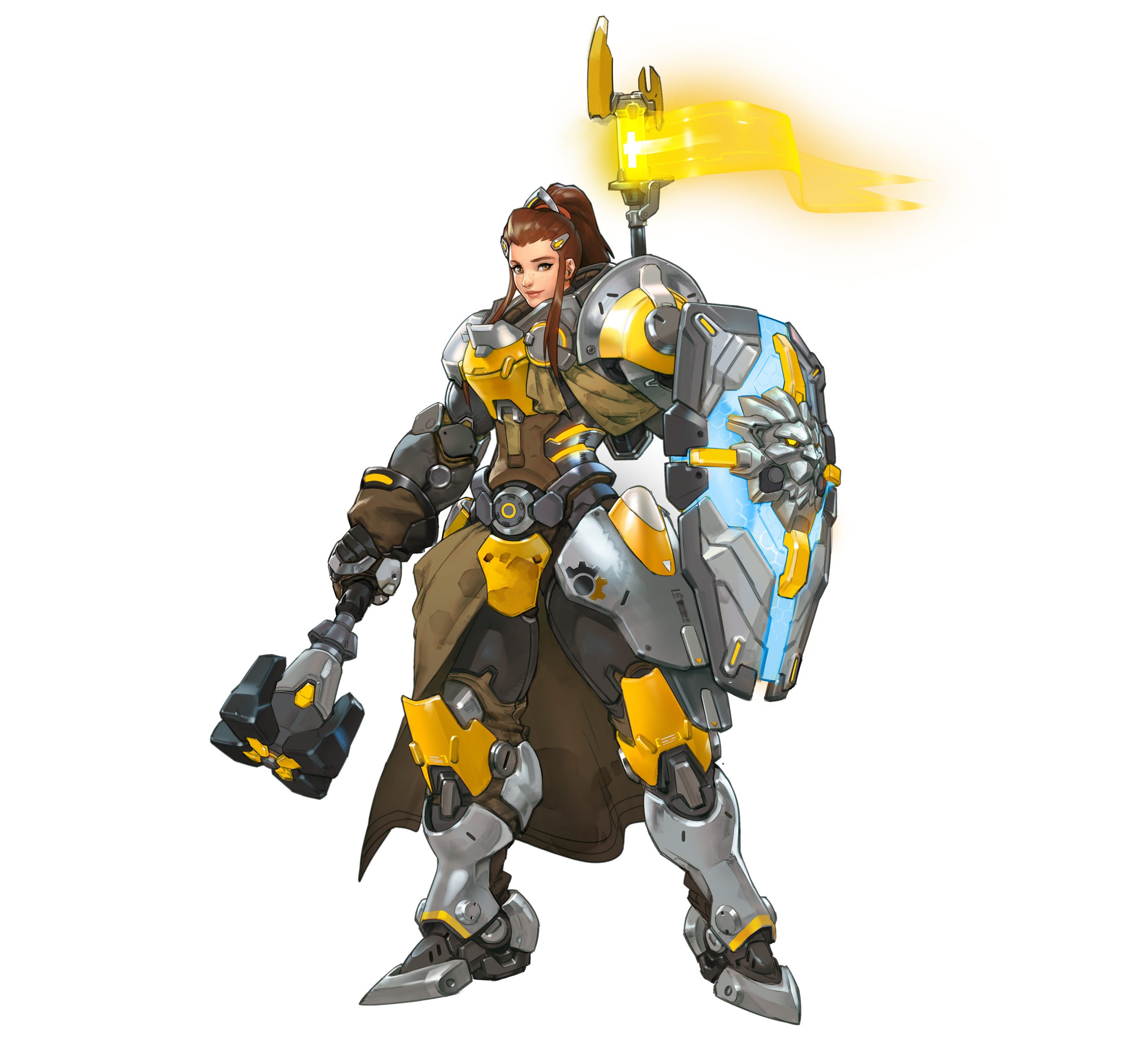 No longer sitting on the sidelines, Brigitte Lindholm has taken up arms to defend those in need of protection. The youngest daughter of weapons designer, Torbjörn Lindholm, Brigitte was the first of his children to show an interest in mechanical engineering. Brigitte spent much of her spare time in her father’s workshop, learning the trade and honing her skills. Her aptitude for engineering mirrored that of her father’s, but Brigitte’s primary interest was in armor fabrication and defensive systems, unlike Torbjörn, who was world renowned (and perhaps infamous) for the weapons he created. Everyone expected that Brigitte would continue her apprenticeship and follow in her father’s footsteps. But her plans changed due to influence of another prominent figure in her life, her father’s close friend and fellow Overwatch agent, Reinhardt Wilhelm. A close friend of the family and Brigitte’s godfather, Reinhardt told Brigitte tales of heroes and chivalry as she grew up. After his retirement and Overwatch’s fall, Reinhardt declared that he would become a knight-errant on a quest to bring justice. Before he left on his adventures, Brigitte surprised him by asking to join him as his squire. Reinhardt accepted. As a squire, Brigitte had many responsibilities, the most important of which was the upkeep of Reinhardt’s Crusader armor (a design she was familiar with as the current version was designed by her father). But more and more, she found her main job was taking care of Reinhardt himself, trying to protect him from his overenthusiasm even as his body was breaking down from years of combat. Eventually, she realized that serving only as a mechanic wasn’t enough, and that the best way she could aid Reinhardt was to become a warrior in her own right. While Reinhardt trained her in combat, Brigitte began to build her own suit of armor in secret. Now Brigitte fights at Reinhardt’s side to protect him, and any others in need as knight and squire journey to make the world a better place, one battle at a time.
