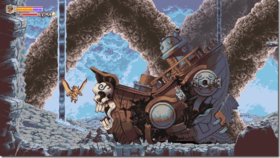 This adventure will take Otus to many places, each of which has been lovingly rendered in pixel artwork. The developers have spent much of their development time on honing this art style, creating areas rich with detail and moving in delightful ways. Each area is designed to be a feast for the eyes, offering dozens of wonderful views to behold as the players comb the levels for their secrets.