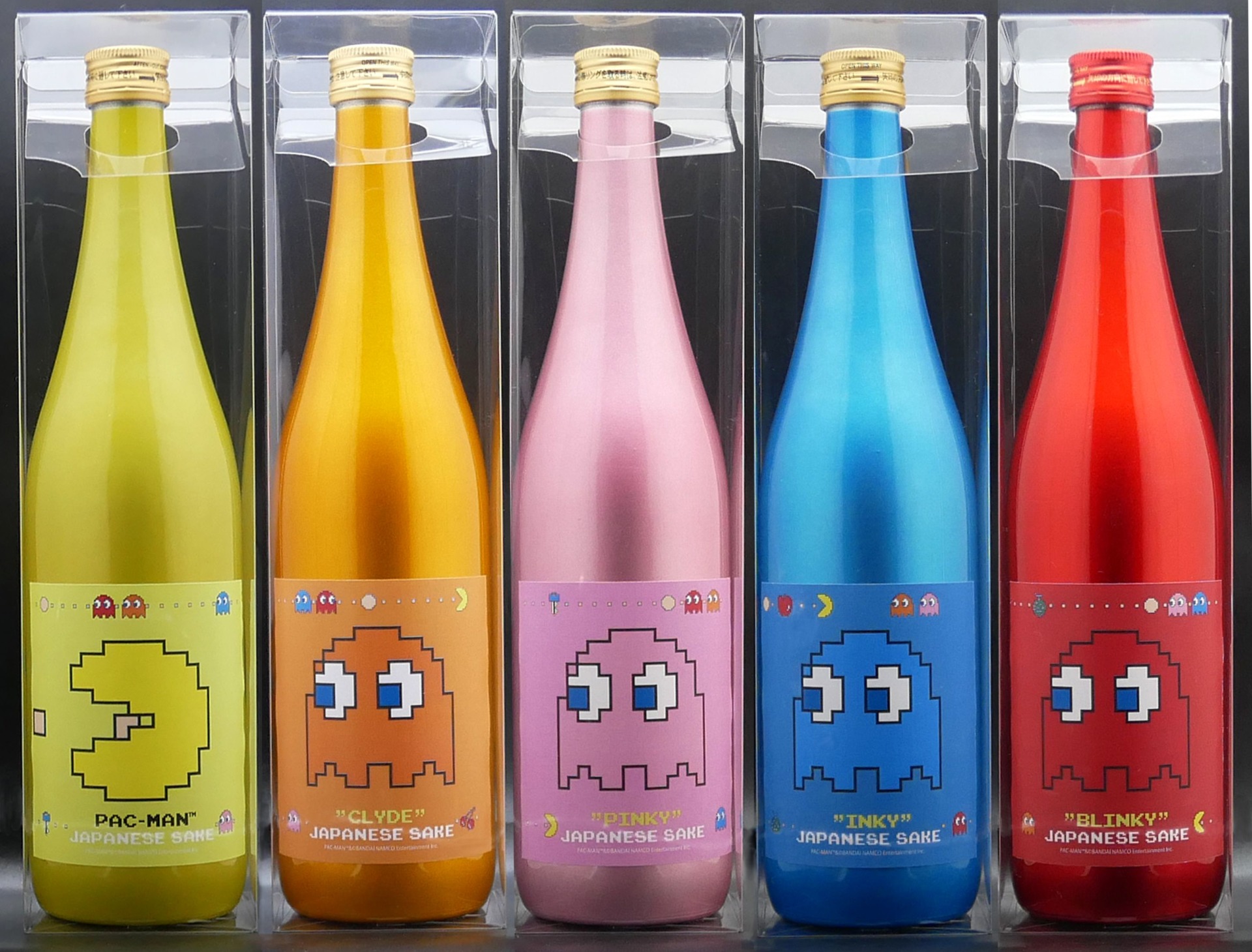 The Pac-Man sake lineup comes in five varieties, with a bottle for Pac-Man and the four ghosts Blinky, Pinky, Inky, and Clyde. The bottles will go for 3,000 yen plus tax each.