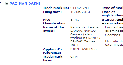 Just yesterday, Namco Bandai registered Pac-Man Dash! and Pac-Man Monsters. Both games have been unannounced so far. Since Pac-Man and the Ghostly Adventures is slated for release this fall on most consoles, Pac-Man Dash! and/or Pac-Man Monsters are probably mobile or downloadable games.