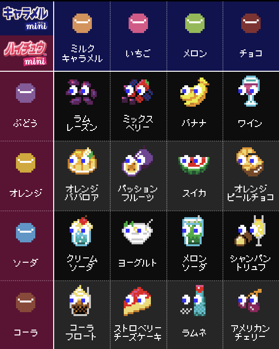 Furthermore, in keeping with the tone of the original game, Morinaga’s browser game will have Pac-Man’s classic pixel art style. Here’s a look at some of the game’s designs: