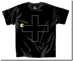 Namco Bandai licensed Pac-Man to Rocawear and two limited edition t-shirts came out of the deal. The women’s shirt is on the left and the men’s tee is on the right.