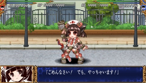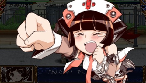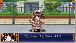 Hyper Nurse Painkiller Kotone-chan is one of the playable characters in Queen’s Gate: Spiral Chaos. She’s armed with her usual tools – a power arm, saw sword, and syringe gun. Check out screenshots of her cut-in animation and battle techniques below.