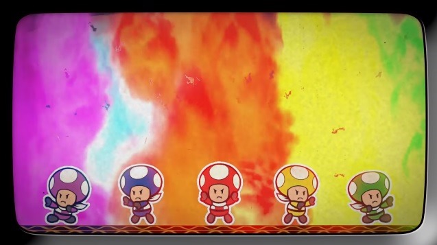 A new Paper Mario: Color Splash trailer has been released, and it introduces a heroic group of toads. Rescue V is a sentai squad, like the Power Rangers, made up of Rescue Red, Rescue Blue, Rescue Yellow, Rescue Purple, and Rescue Green. Together, they’re the fearless color defenders that attempt to take on missions to help Mario restore color to the world.