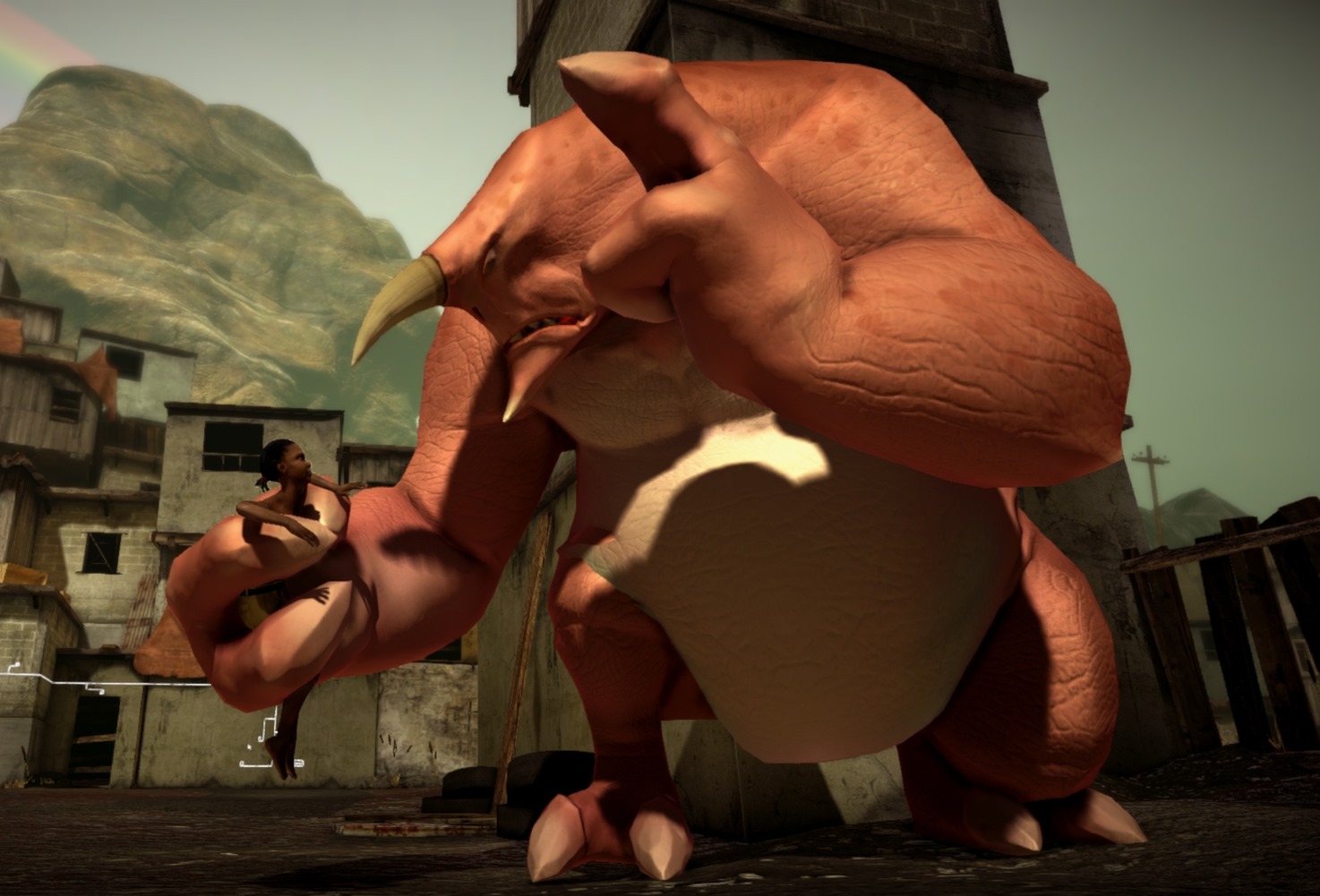 From the outset, Papo & Yo doesn’t seem like a game that’s particularly interested in being flashy. The main menu is simply a black screen with white text; the only gimmick being that a white silhouette of a frog hops onto the screen every time the cursor highlights one of the buttons. The game starts with a young boy named Quico, hiding in a closet from a large menacing shadow, and then escaping into another world through a glowing, white portal. Quico appears on the other side in a favela—a type of shanty town in Brazil, right down to the characteristically uneven architecture. This architecture largely contributes to the game’s mechanics; namely, those of a 3D platformer. For the entirety of the game, Quico traverses across the uneven terrain across the favela on a journey to save Monster. Monster is a large hulking creature with pink skin, a round belly, and a horn each on the forehead and chin. Despite some of its intimidating features, it’s rather docile and harmless to Quico. It can even be helpful in helping Quico overcome obstacles, such as stepping on large tiles to reveal paths. At the same time, it mostly marches to its own beat and doesn’t actively help Quico, so manipulating it with its favorite food—coconuts—is another aspect of the environment puzzles.