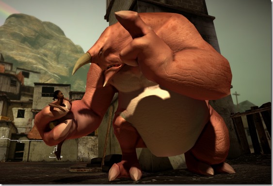 In addition to having very little dialogue (presumably to not have it interfere with the mood), background music suits the urgency of the situation it plays in, from easygoing to frantic; the entire world is desolate and lonely for all intents and purposes, and the hot-again-cold-again relationship between Quico and Monster is very much like walking together with someone who’s indifferent to you at best and prone to outbursts in worse situations. This is actually not a farfetched parallel to be drawn, as it was already made clear in the game’s promotional info that it’s inspired by the actual childhood experience of director, Vander Caballero. As for what sort of significance this factoid has in the game, I’d rather not spoil it, partly because it’s an important part of the presentation. It’s not hard to understand either, due to the game eventually making sure near the end that the metaphors aren’t lost on the player. Papo & Yo is not a “game” in the traditional sense; it’s very straightforward with no mechanical complexity, lasting a handful of hours . It’s closer to a fairy tale or a short story with a personal expression at the core, which just so happens to borrow some 3D platforming mechanics as part of the “scaffolding” to get its point across. Not a moral or a message; just relaying a past experience set in an abstract rendition of a real-world location. Food for thought: 1. There’s something to be said for or against the metaphors being explicitly spelled out—not the least of which being hinted vividly the first moment the game starts. Considering the intent is to get a specific point across, I can at least understand the need to eliminate potential ambiguity. However, I also feel that the preface hint could have been shifted to right before the end credits, if only to reserve whatever fraction of the mystery it had spoiled in the current state. 2. For those interested in learning the game’s origins and intentions more intimately, it’s perhaps recommendable to read various interviews director Vander Caballero did. But since they extensively discuss spoilers, they’re best read after clearing the game.