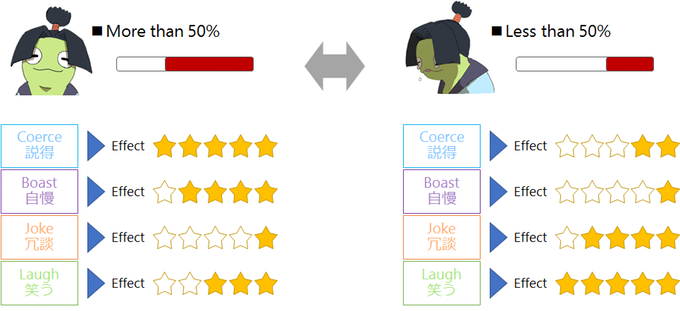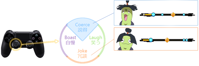 How do you want to respond to your opponent’s insults? It’s up to you! Project Rap Rabbit features an “emotion wheel” inspired by the likes of Mass Effect and Fallout 4. Do you want to hit back with a boast, with a joke, by dismissing the attack or by coercing your opponent? Select the emotion you wish to unleash to preview the upcoming rhythm and your foe’s reaction: There’s no wrong choice, but different emotions will inflict different levels of damage to your adversary’s Swag Gauge.