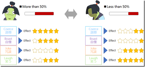 Don’t panic! The status of your opponent, determined by the level of his or her Swag Gauge, can help you out. Every foe reacts to each emotion differently, and while it’s possible to beat each song using every single permutation of lyrics, picking the more powerful emotional response to any given state will result in better boosts to your own Swag Gauge during the Rap section.
