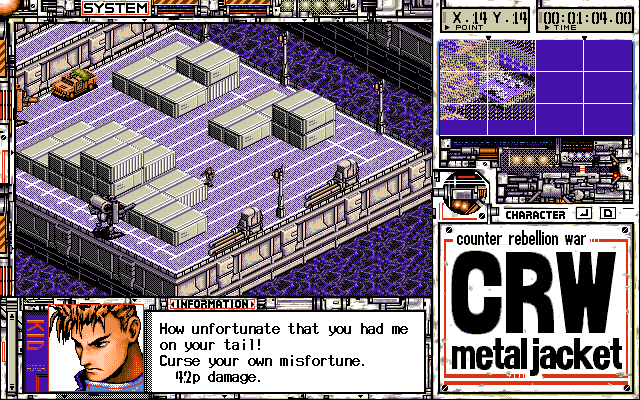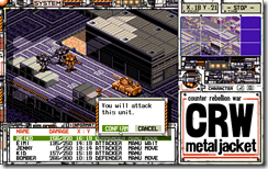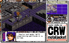 Isometric strategy game CRW Metal Jacket on the PC-98 has been fan translated into English from Japanese by 46 OkuMen. The game is a strategy game that plays something like the first X-COM game, except with mecha pilots in real-time. You are able to upgrade the mecha units and the pilots for each mission they survive. Check out screenshots below: