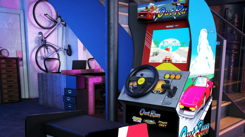 Classic Sega racing games will feel a little more authentic with Arcade1Up’s latest release. An Arcade1Up OutRun cabinet is on the way and will launch in early December 2020. As is common with units that include an actual seat, it will cost $499.99. The Arcade1Up OutRun cabinet does give the racer top billing, but it actually contains multiple OutRun and Yu Suzuki racers. The follow-ups Turbo OutRun and OutRunners are both there, as is Power Drift. As this is a racing cabinet, it has an entirely new Arcade1Up design to accommodate the wheel, brake, and gas pedal. But like other games from the company, it has a light-up marquee, the 17” LCD screen, dual speakers, and accessories to help stabilize it once you place it in your home. At the moment, there is only one place to order this OutRun cabinet. Arcade1Up is directly selling it at the moment. However, it is only a temporary online exclusive and will eventually also appear at other stores. (Retailers like Best Buy, Costco, and Walmart carry the company’s cabinets.) Here’s a better look at the cabinet.