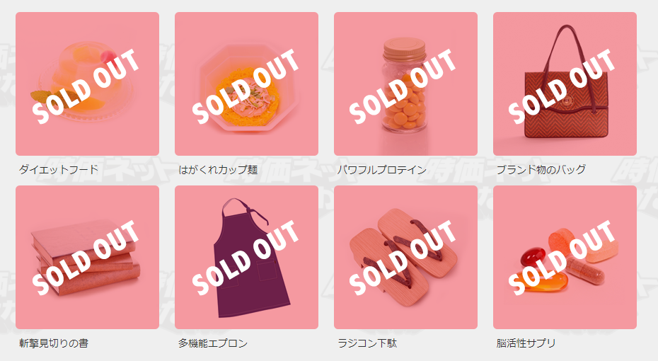 Top row: Diet Food, Hagakure Cup Noodles, Powerful Protein, and Brand Name Bag