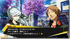 Famitsu also shared two screenshots of Persona 4 Arena’s event scenes. Set after the events in Persona 4, rumor has it the Midnight Channel is back on with a no-holds barred fighting TV show.