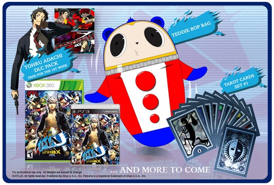 Original story continued: Additionally, Atlus announced that pre-orders and all first-print editions will include a collectible Teddie bop bag and Set #1 of the Persona Tarot cards. Set #2 will be included with Persona Q: Shadow of the Labyrinth.