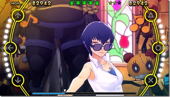 It also can be a game of distractions. With some music games, generic animations play in the background during songs, as not to pull focus away from the icons passing on screen. The Hatsune Miku: Project Diva series has central figures, but also positions the indicators around the screen to keep someone’s eyes from settling in one place and instead locked onto what matters – the beat of the song. With Persona 4: Dancing All Night, it seems as though the game expects you to know the music well enough where your attention can be split. Because things should be so familiar and nostalgic, watching the characters and notes in the center while things are happening at the outer edges should be no trouble, right? (Not quite.)