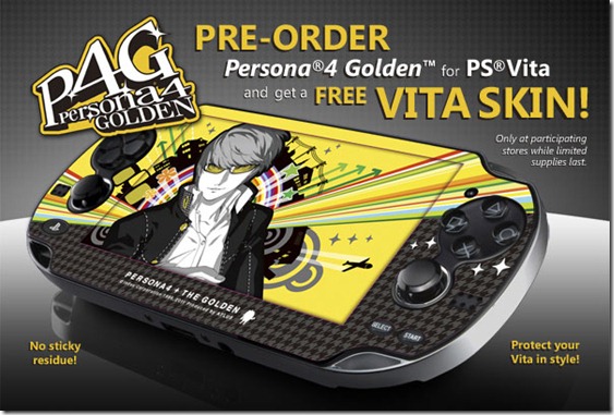 In Japan, Persona fans had a chance to grab a special PlayStation Vita skin for Persona 4: Golden. Atlus USA are making this available in North America as well. If you pre-order Persona 4: Golden from GameStop, EB Games Canada or Amazon, you’ll get the skin to apply to your PlayStation Vita.